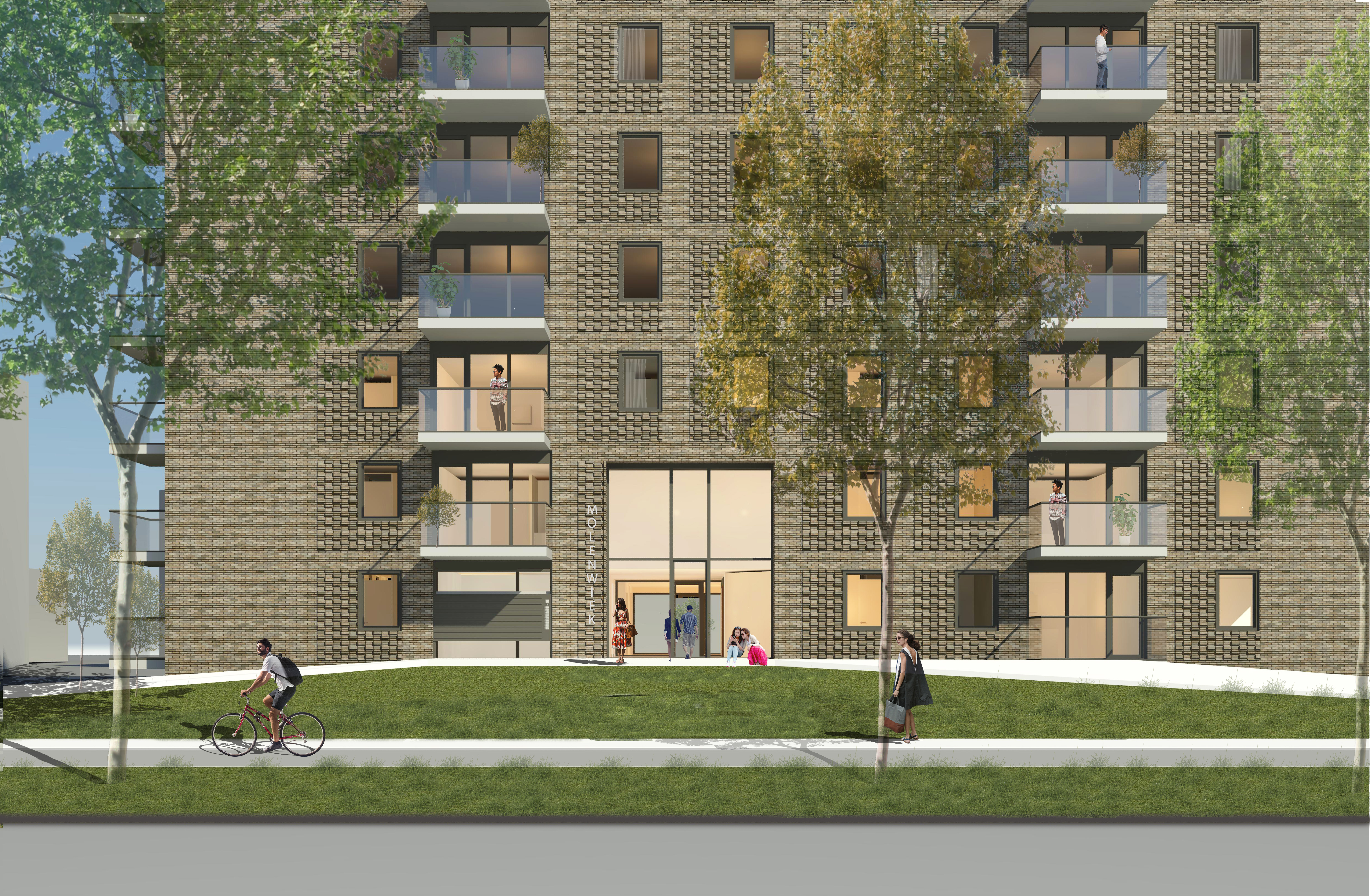 Het complex Molenwiek bevat 76 appartementen en een klein wijkkantoor voor de Alliantie regio Almere als ´aanlandplek´ voor de beheerders die hier korte tijd kunnen werken. De appartementen zijn onderverdeeld in 73 driekamerappartementen van circa 68 m2, 2 tweekamerappartementen van circa 60 m2 en 1 éénkamerappartement van 50 m2 met individuele bergingen in het souterrain. Het gebouw is volledig gasvrij, ieder appartement is aangesloten op een lucht-warmtepomp en zonnepanelen.