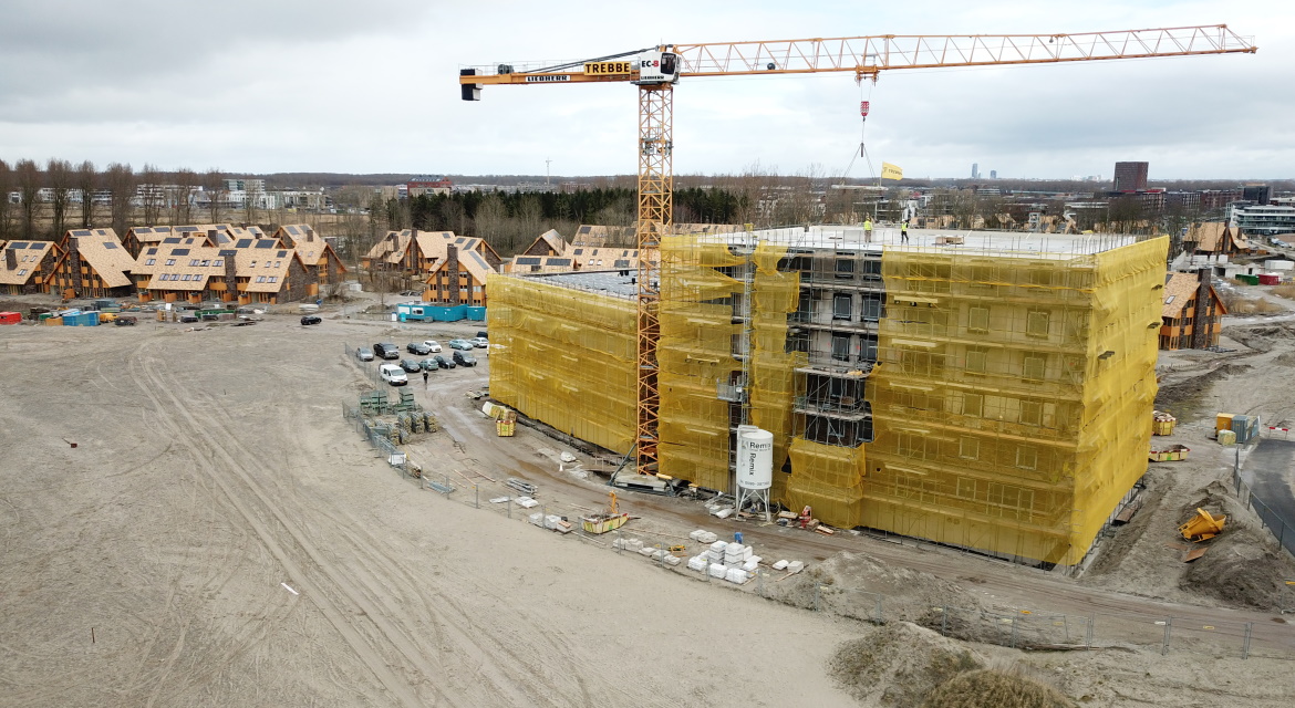 Marcel Grootenboer, projectmanager bij de Alliantie Ontwikkeling: “Na de samenwerking bij het project De Molenwiek in Almere Buiten hebben we een zusje van dit plan ontwikkeld in het gebied Kop Noord in Almere Duin. Het is mooi om te zien dat de bouw zo voorspoedig verloopt dat we nu al het hoogste punt hebben bereikt. Ondanks alle beperkingen door deze gekke tijd en het extreme weer wat we gehad hebben. Daar bedanken wij Trebbe van harte voor. Op naar de oplevering, waar we straks weer 78 sleutels kunnen uitreiken aan blije huurders.”