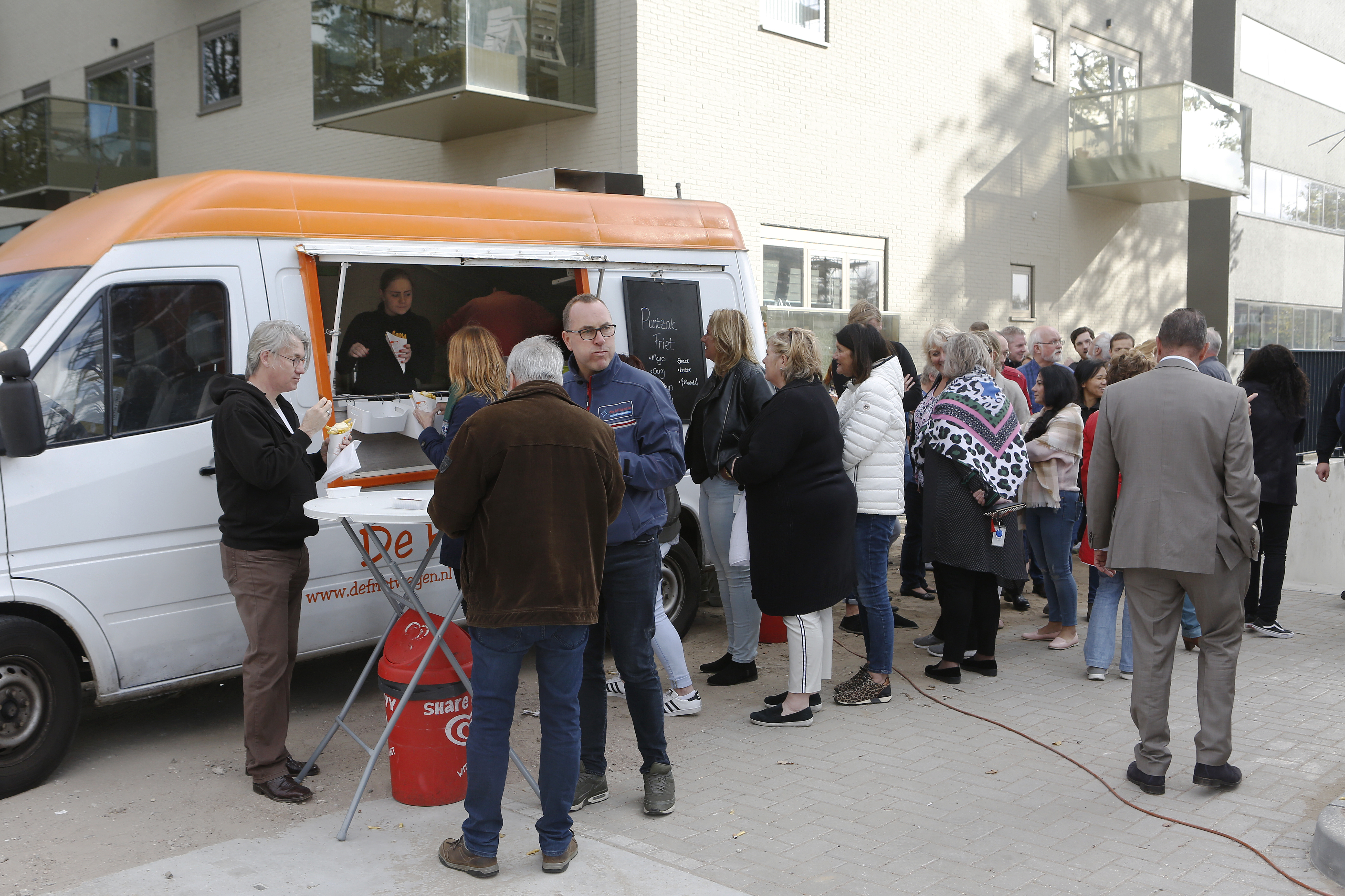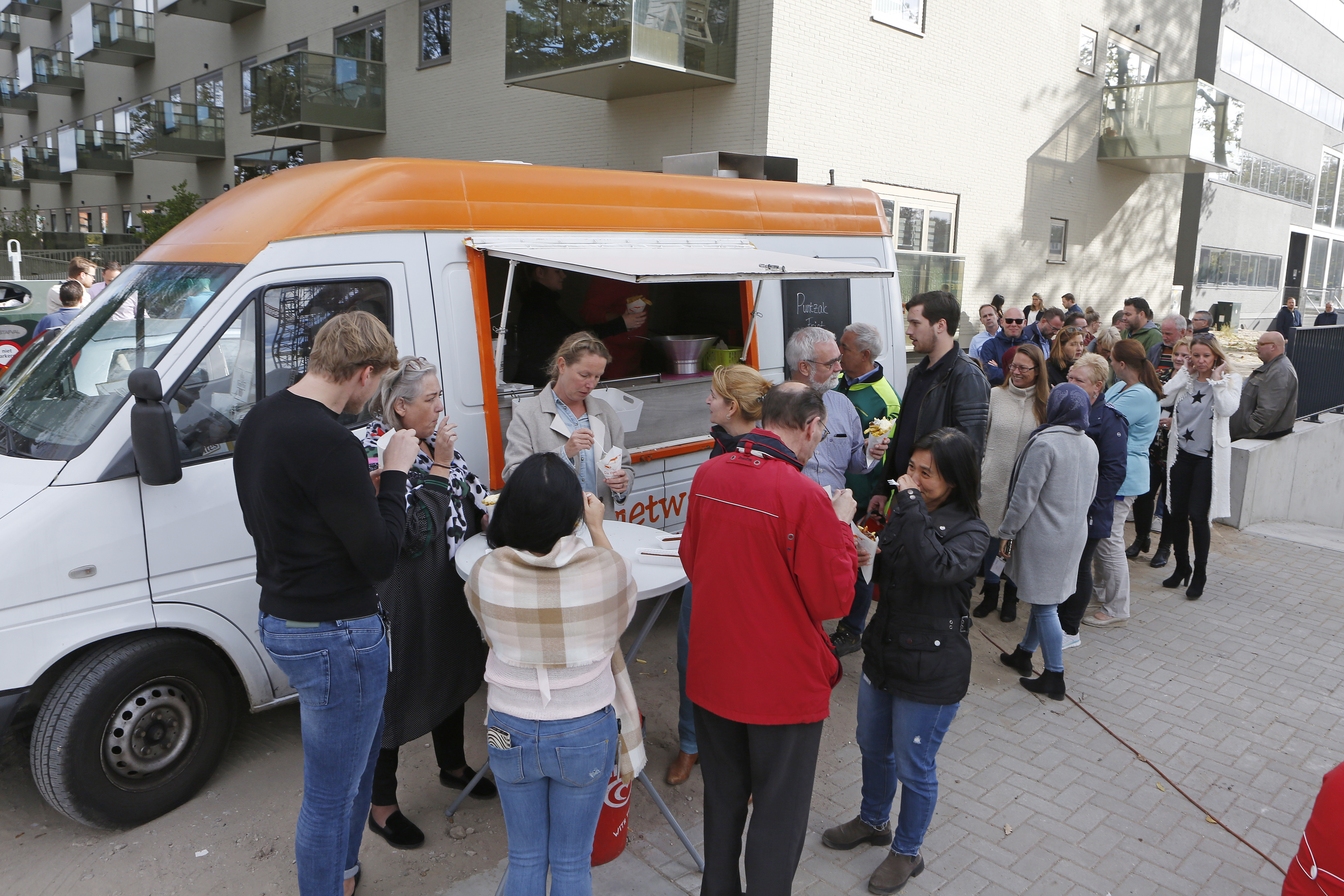 Voor het personeel van de Dura Vermeer en de Alliantie was een snackkar geplaatst bij de ingang van de parkeergarage waar men onder het genot van een patatje met supplement de parkeergarage kon bezichtigen. Hier werd door allen gretig gebruik van gemaakt en zeer gewaardeerd. Medio volgend jaar zullen de eerste appartementen opgeleverd worden en kunnen de bewoners er in trekken.