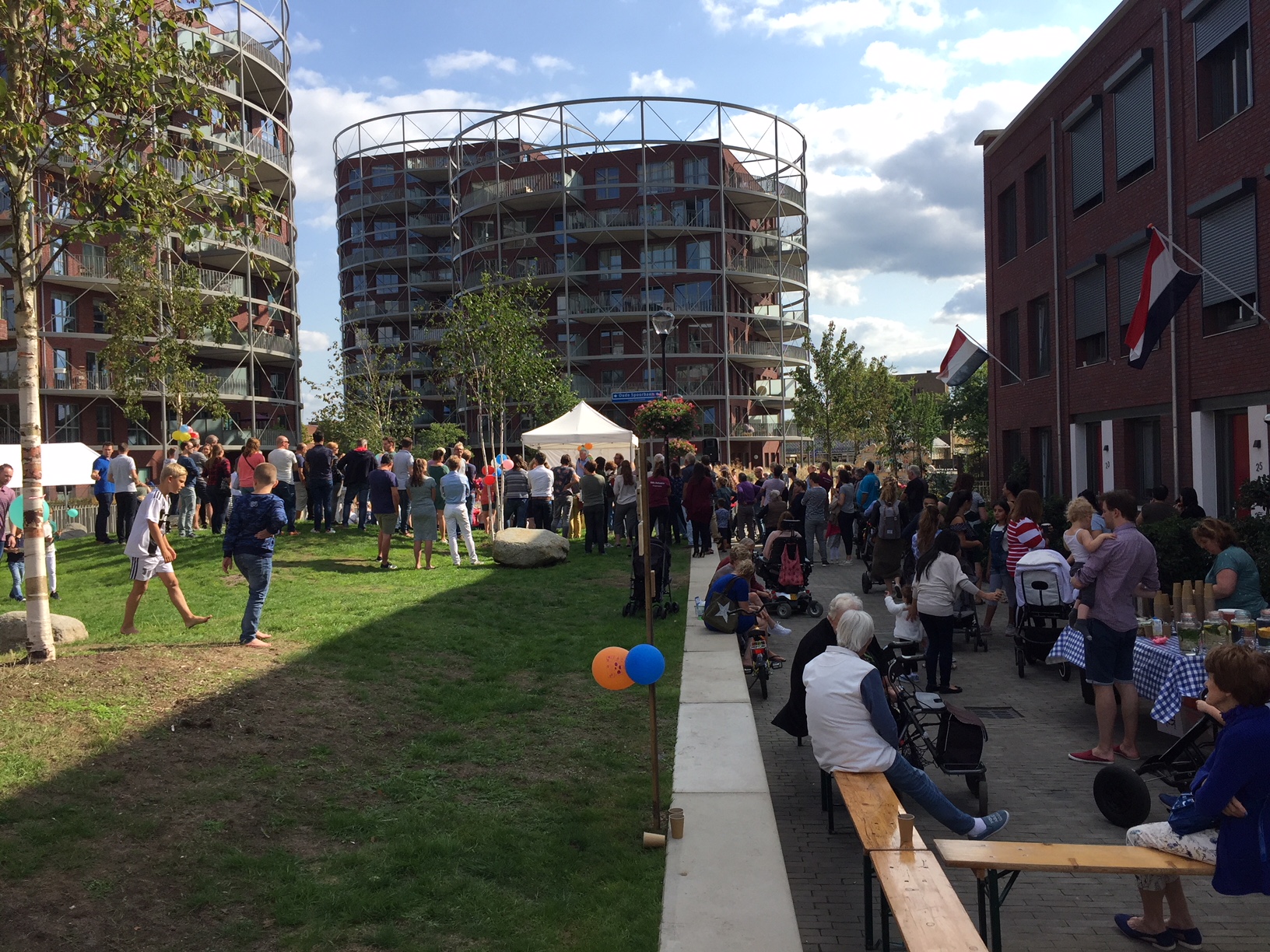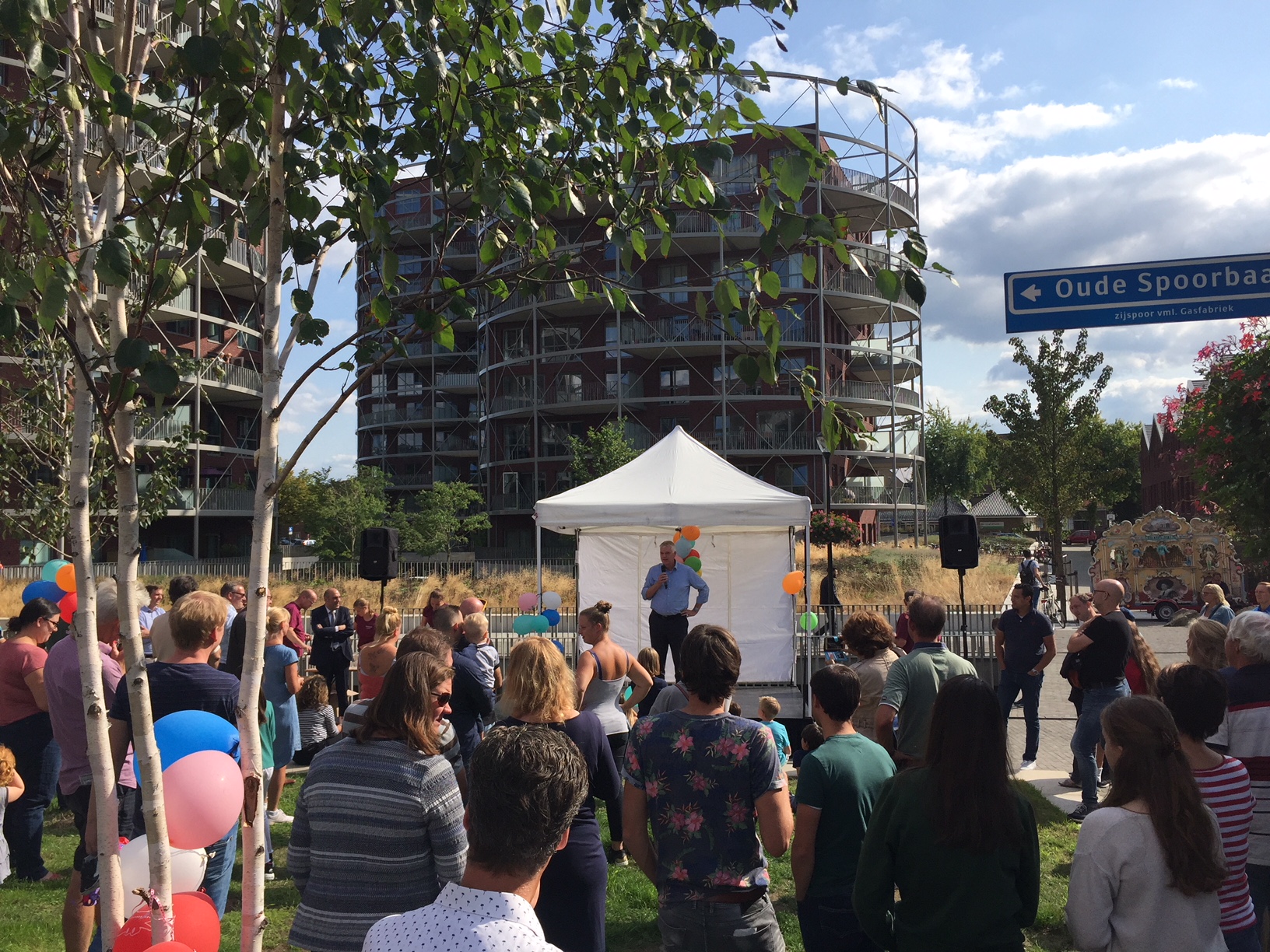 De ontwikkeling van Villa Industria is een samenwerking tussen de Alliantie en Heijmans en de laatste koopwoningen zijn recent door Heijmans aan de kopers opgeleverd. De buurtvereniging die al enige jaren zeer actief is, heeft het feest georganiseerd. Er waren naast een draaiorgel, taartenbakwedstrijd en diverse foodtrucks ook allerlei activiteiten voor kinderen, zoals springkussens en een puzzeltocht. Burgemeester Broertjes, een gedeputeerde van de Provincie en Jan van Barneveld namens de Alliantie en Heijmans benadrukten in hun speeches de grote waarde van deze 'hippe' buurt voor Hilversum. Daarna is er door de burgemeester samen met kinderen uit de buurt een speciale Villa Industria vlag gehesen.