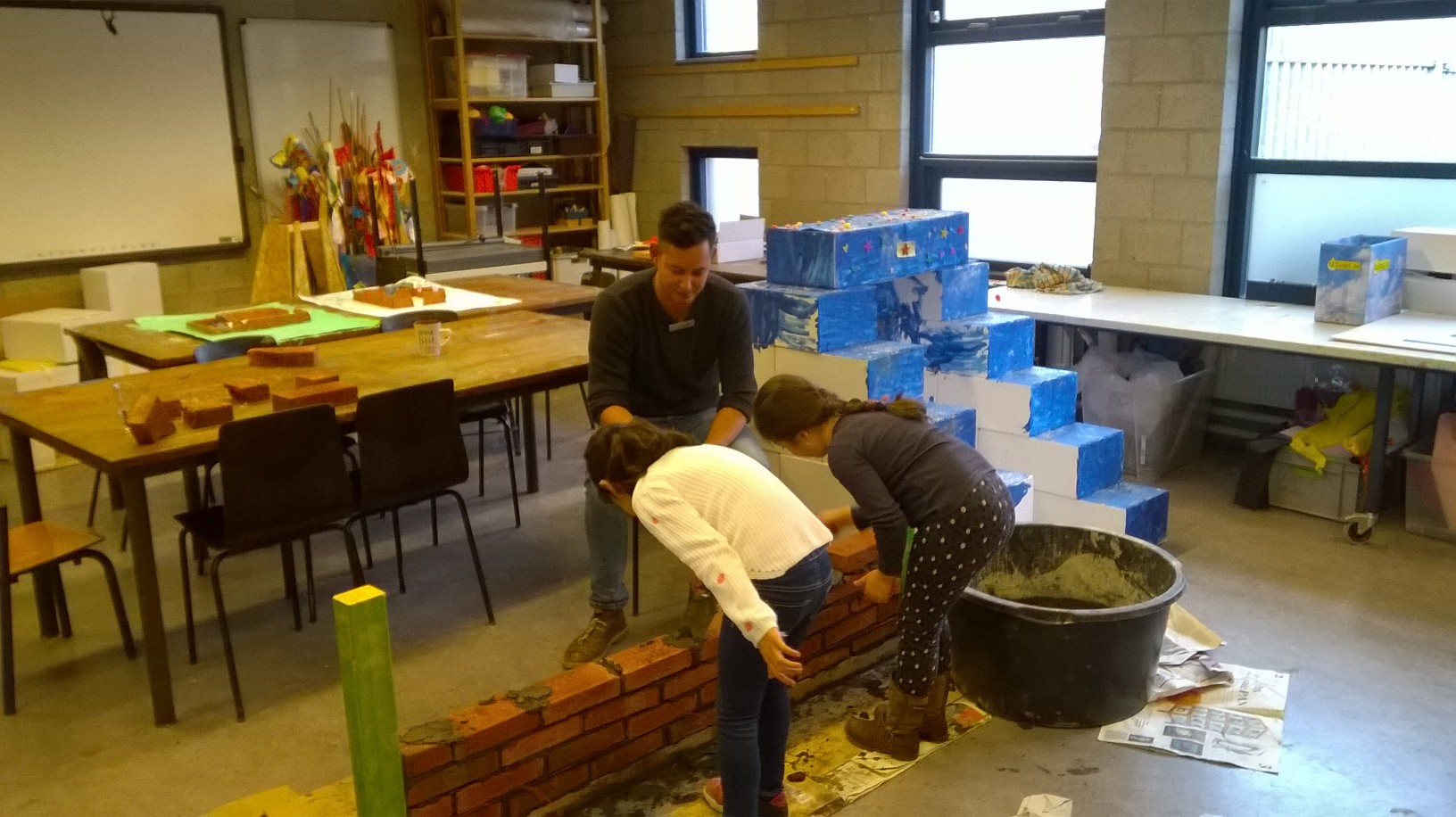 Gedurende 4 weken werden lessen verzorgd op de school en op de bouwplaats. Met name de praktijklessen in zowel klaslokaal als in de kelder van de nieuwbouw waren een groot succes. De 3 kinderen met het meeste talent voor metselen hebben uiteindelijk de eerste steen gelegd. Er was een budget beschikbaar voor de aankoop van gereedschappen en aannemer Slokker en haar onderaannemers stelden materialen beschikbaar.
