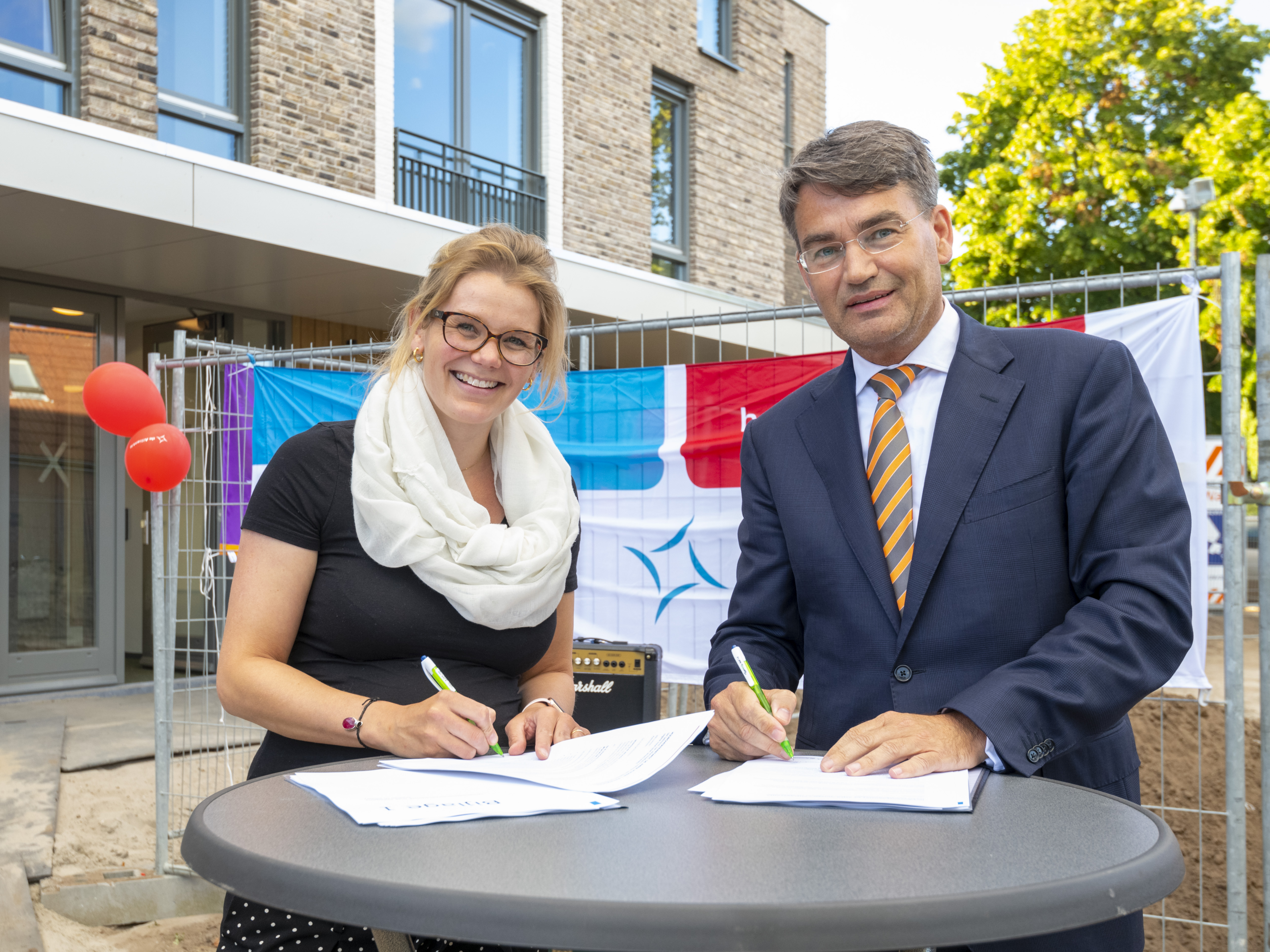 Op 2 juli jl. was het voor de cliënten van Philadelphia eindelijk feest: na een jaar vol verwachting ondertekenden de Alliantie en Stichting Philadelphia het huurcontract van project De Amer in Huizen. Hierna mochten de blije bewoners hun sleutels ‘verdienen’ tijdens een spelletje ringwerpen. Een en ander natuurlijk onder het genot van een bubbeltje en een hapje.