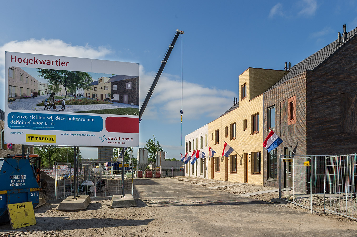 Voor de velden 3a, 3b, 7b en 8 in het plangebied Hogekwartier in Amersfoort hielden we eind 2017 de aanbesteding. We zochten naar een ontwikkelende aannemer die bewezen had goede concepten te hebben met een korte voorbereidings- en bouwtijd. Trebbe overtuigde ons met een eigen ontwerp. Al in november 2018 kon de bouw van start gaan en eind juni, slechts 7 maanden later, konden wij de eerste bewoners blij maken met de sleutels van hun nieuwe woningen.