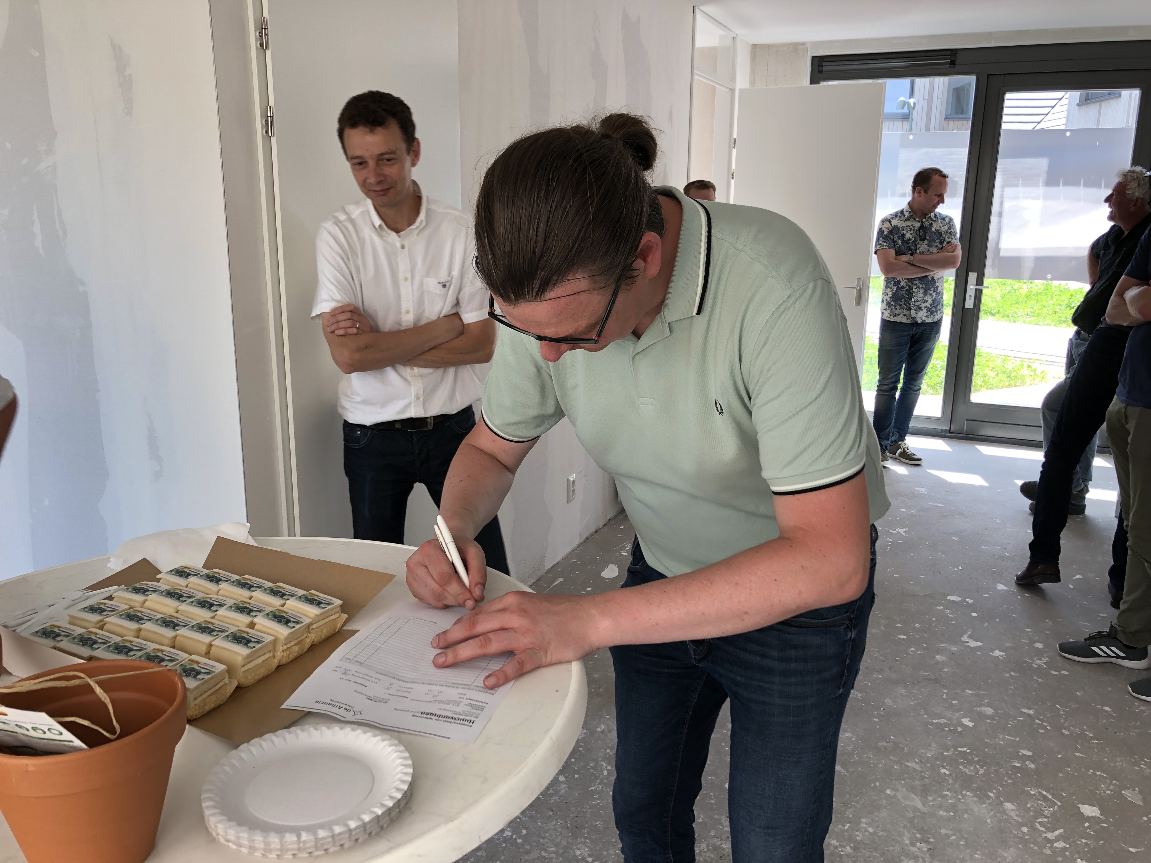 De oplevering werd opgefleurd door een kleine attentie voor de nieuwe huurders en een feestelijk petitfourtje voor het bouw- en ontwikkelteam. Het procesverbaal van oplevering werd namens Heijmans getekend door de heer J. van Asch (directeur Heijmans Bouw) en namens de Alliantie Ontwikkeling door de heer Paul van den Oever (kwaliteitscontroleur).