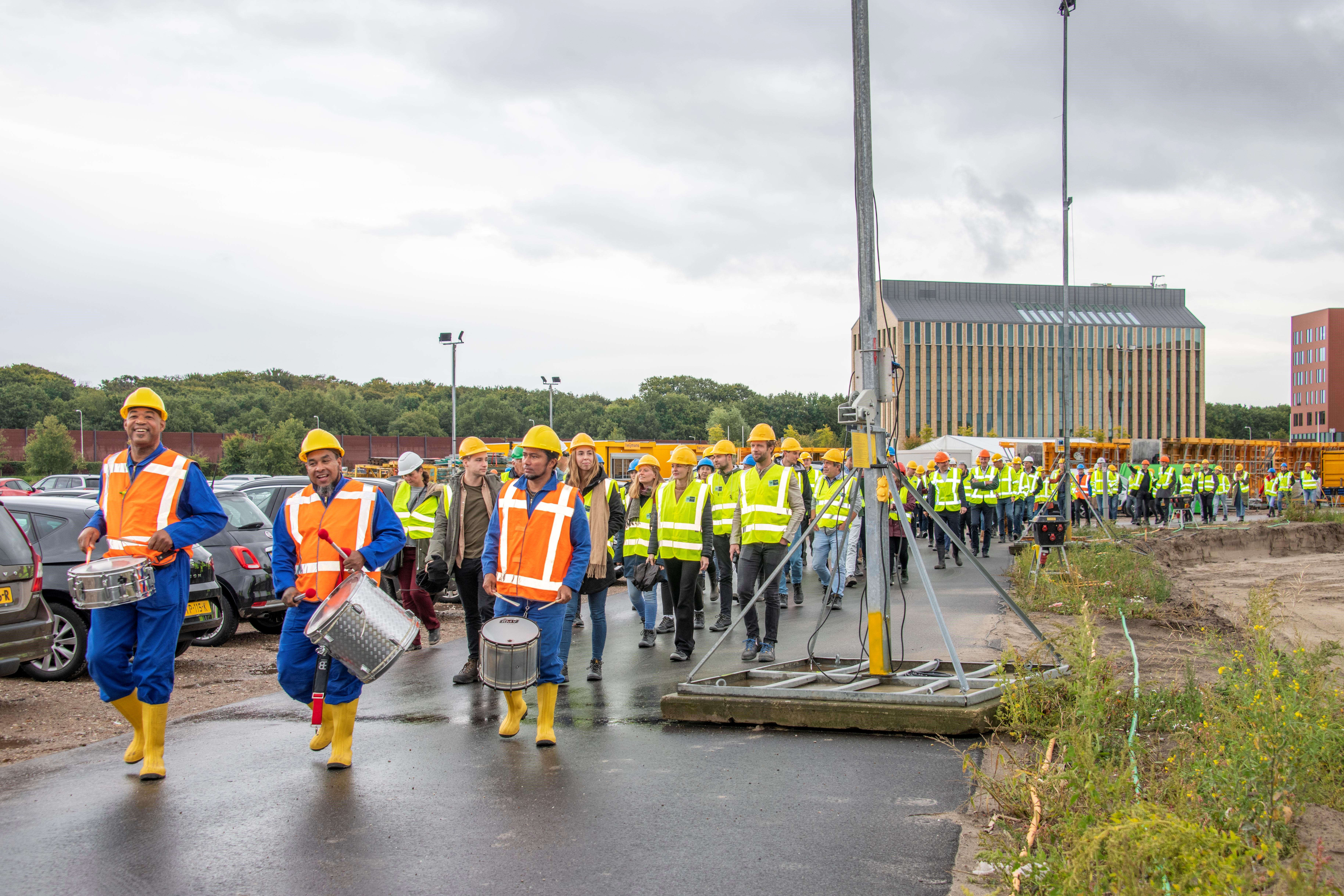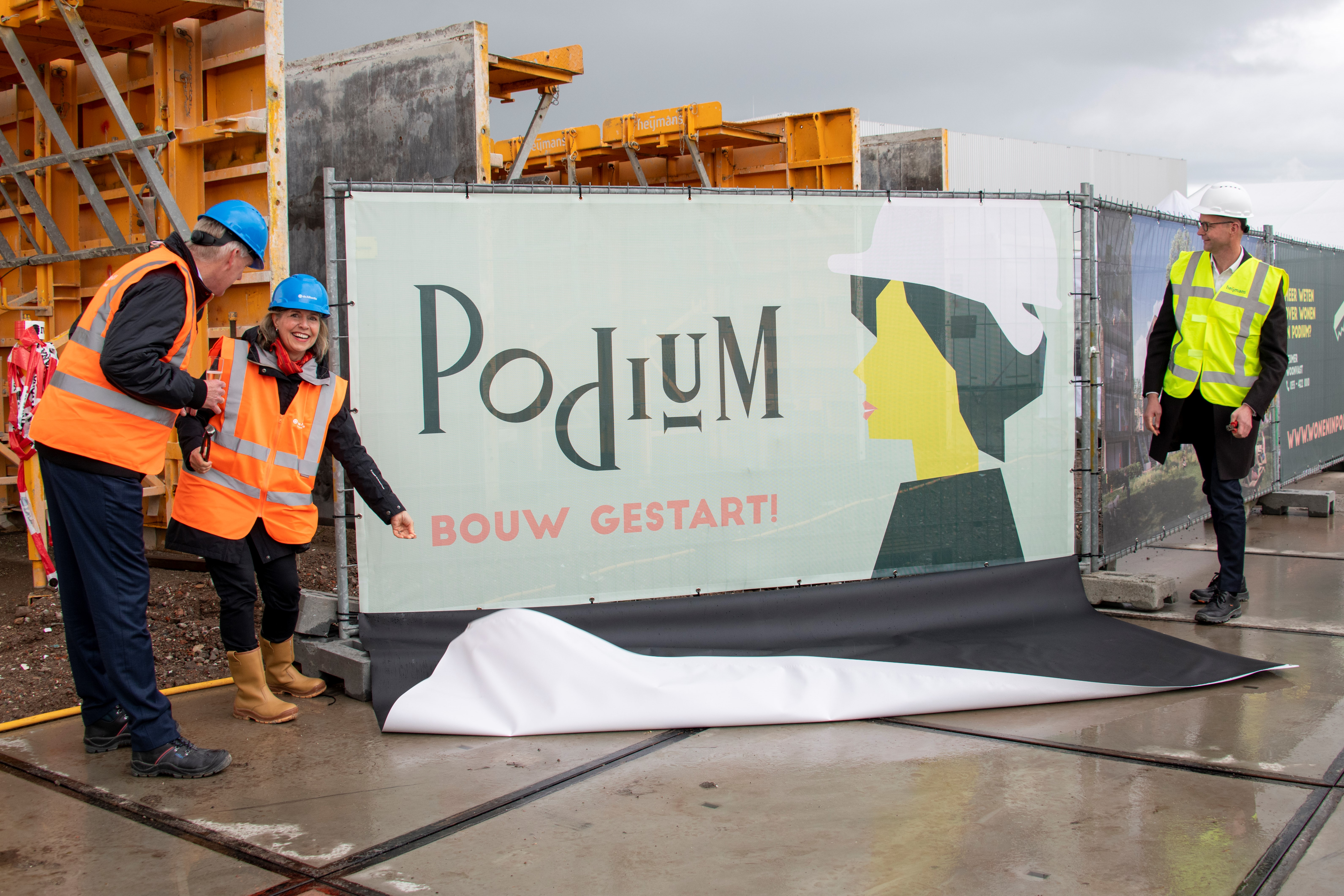 Met opzwepende, hartverwarmende klanken van de Caribische klinkende drumband werd de start van de bouw van plan Podium in Vathorst (Amersfoort) ingeluid. Er werd een symbolische eerste paal geslagen en een bouwhekdoek onthuld.