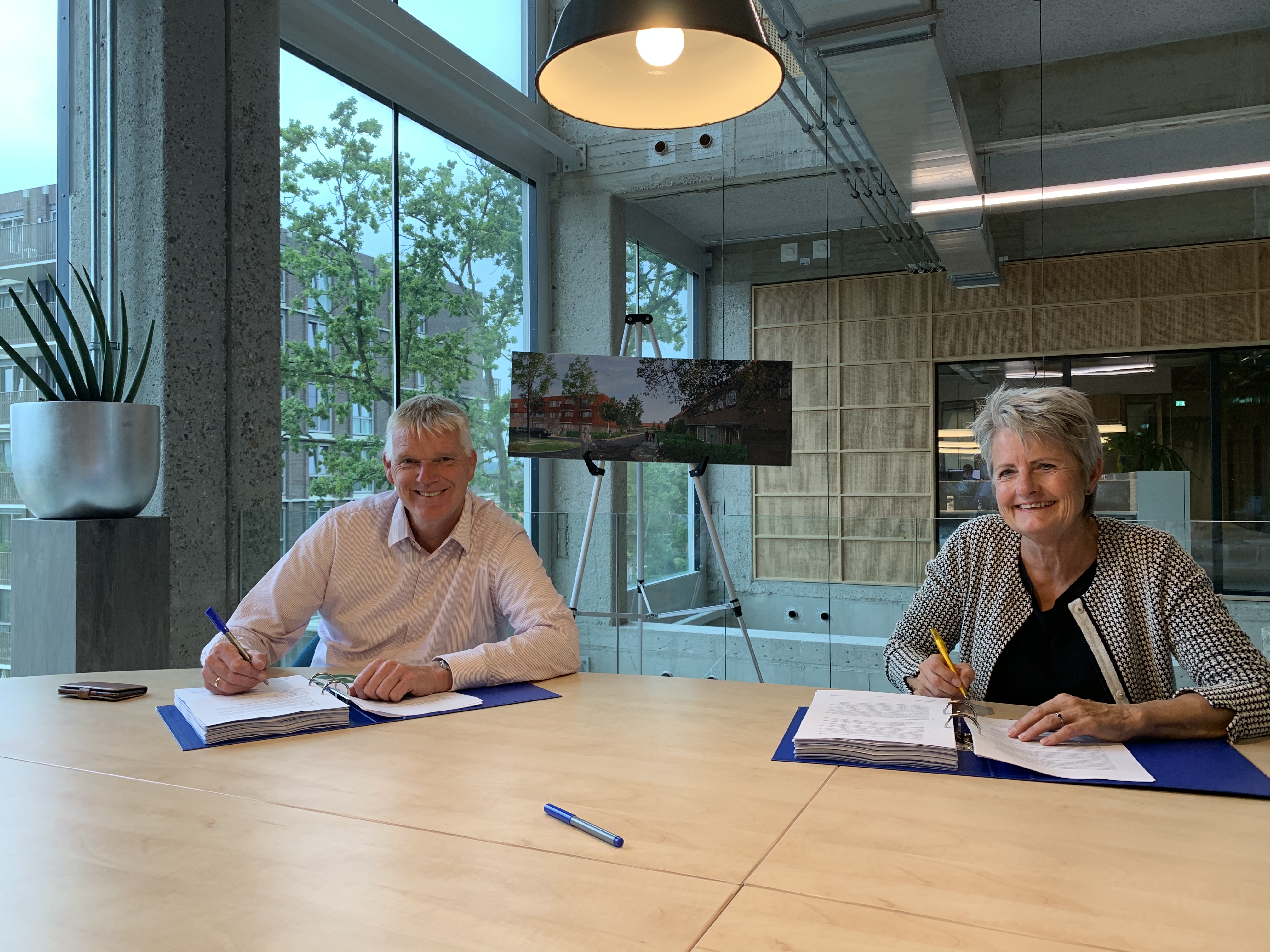 Met Trebbe tekenden we de aanneemovereenkomst voor de bouw van 25 appartementen en 9 eengezinswoningen in de sociale huursector. Vanuit een intensief participatietraject met buurtvereniging BIK is een prachtig ontwerp door Moke Architecten tot stand gekomen. Op het terrein komen ook nog 37 appartementen voor de sociale verhuur van Dudok Wonen.